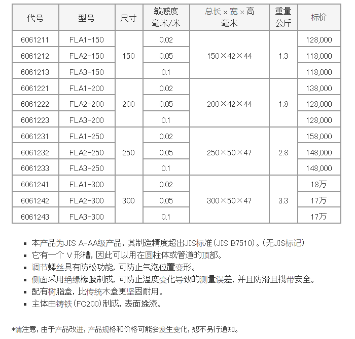 FSK 精密平面水平仪 JIS A-AA *系列